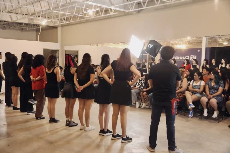 Salones de danza con duela profesional, aulas de actuación, cabinas de canto, áreas comunes y escenarios propios donde los estudiantes entrenan, crean y se presentan.”